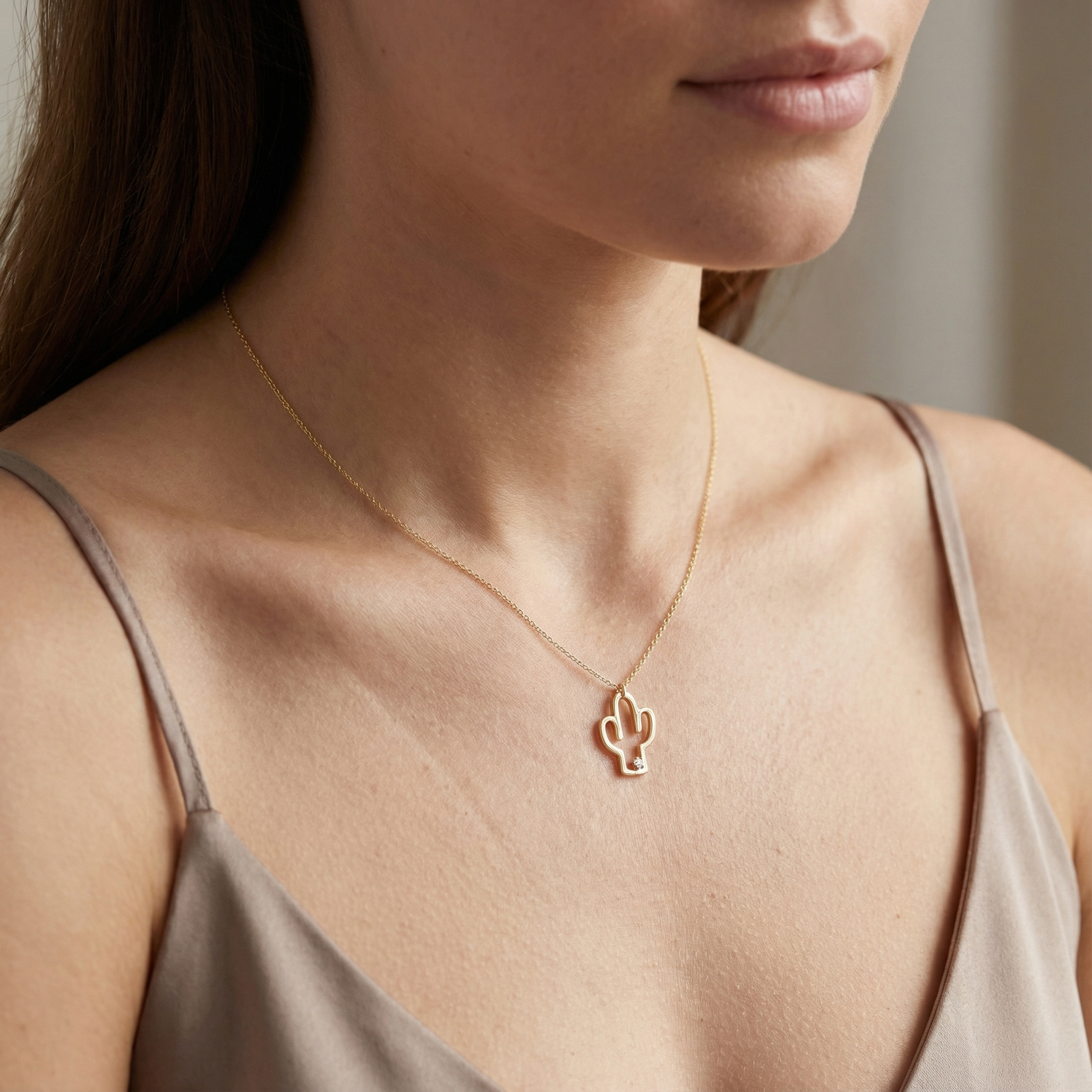 0,01 Karat Pırlantalı Kolye "Kaktüs"