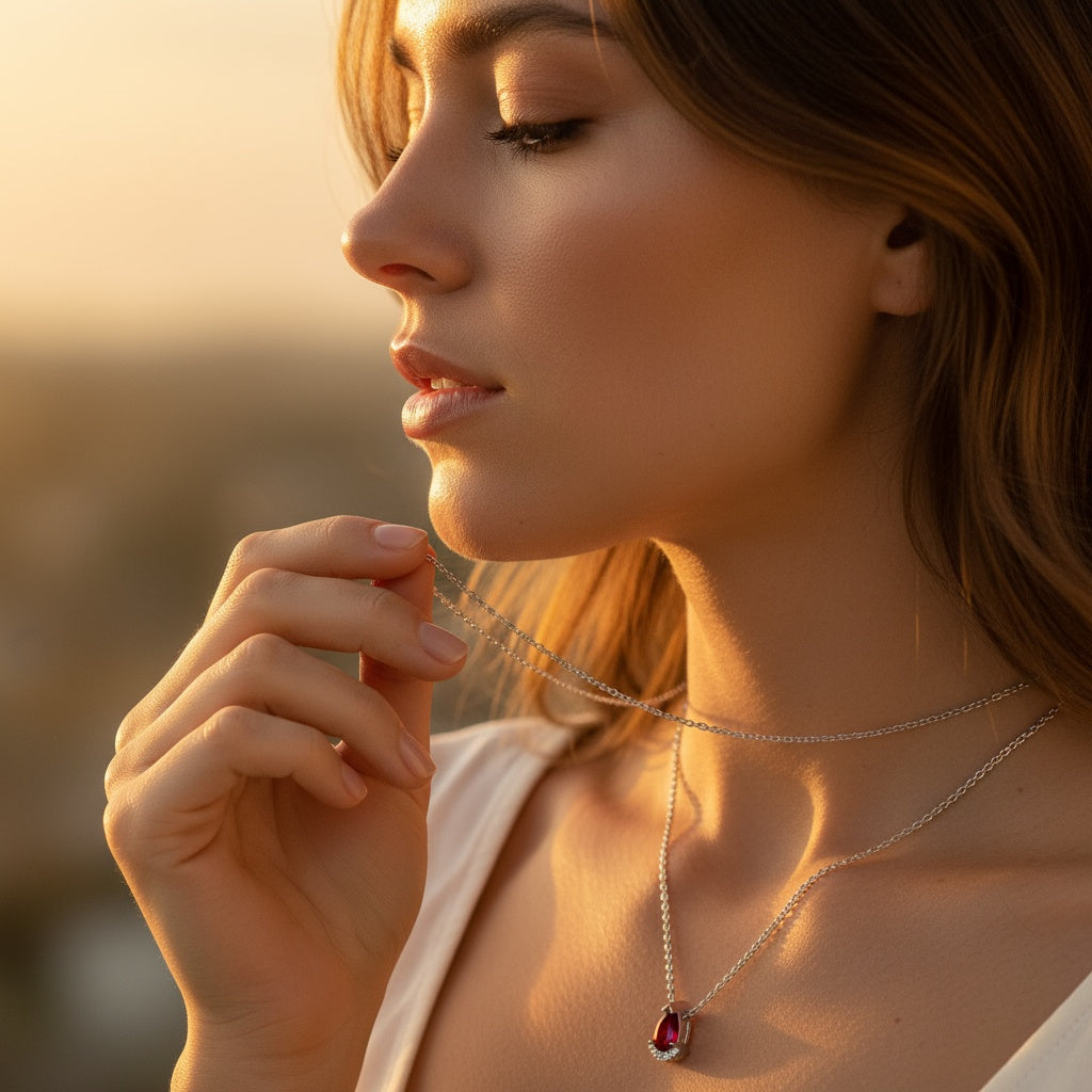 0,27 Karat Pırlantalı Yakut Kolye