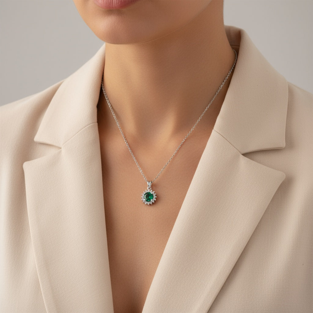 0,39 Karat Pırlantalı Zümrüt Kolye
