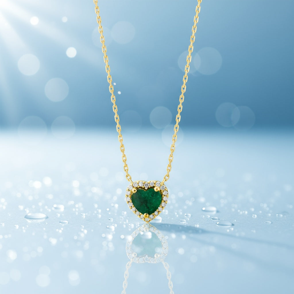 0,45 Karat Pırlantalı Zümrüt Kolye
