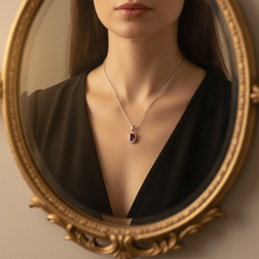 0,68 Karat Pırlantalı Yakut Kolye