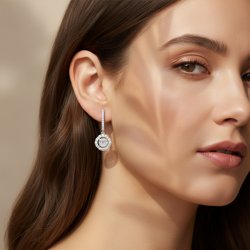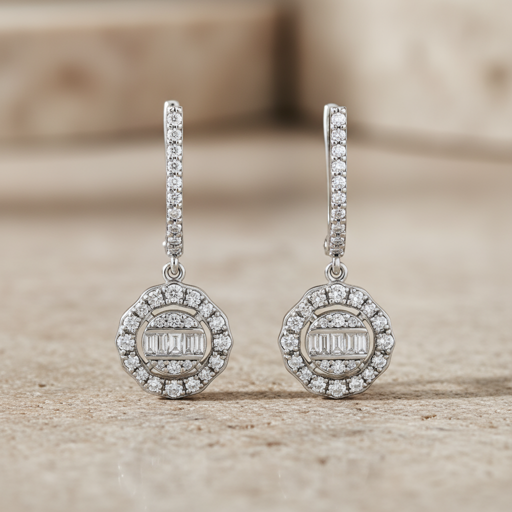 0,76 Karat Tasarım Baget Pırlanta Küpe