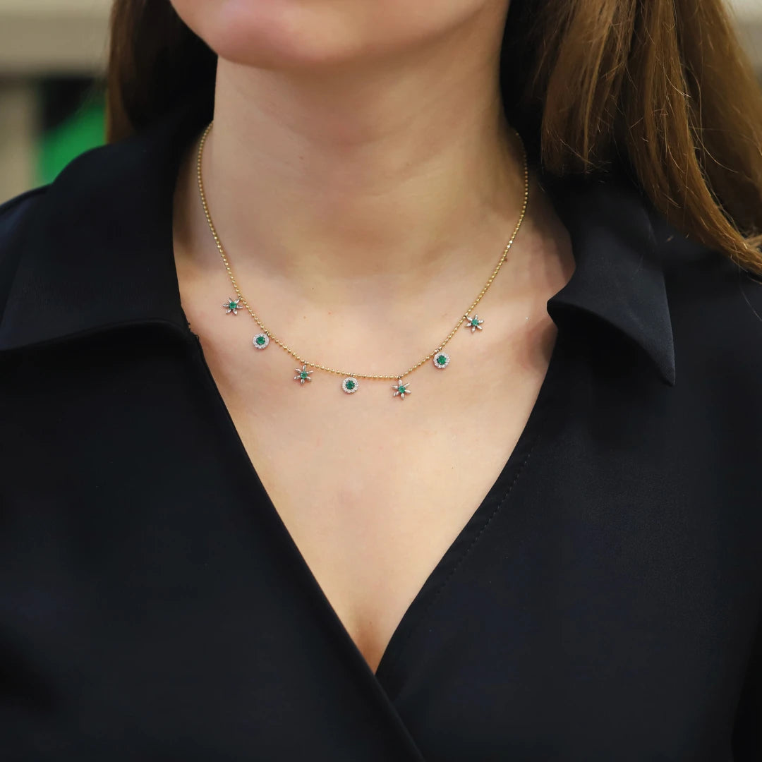 0,78 Karat Tasarım Pırlantalı Zümrüt Kolye