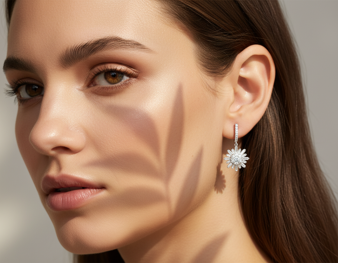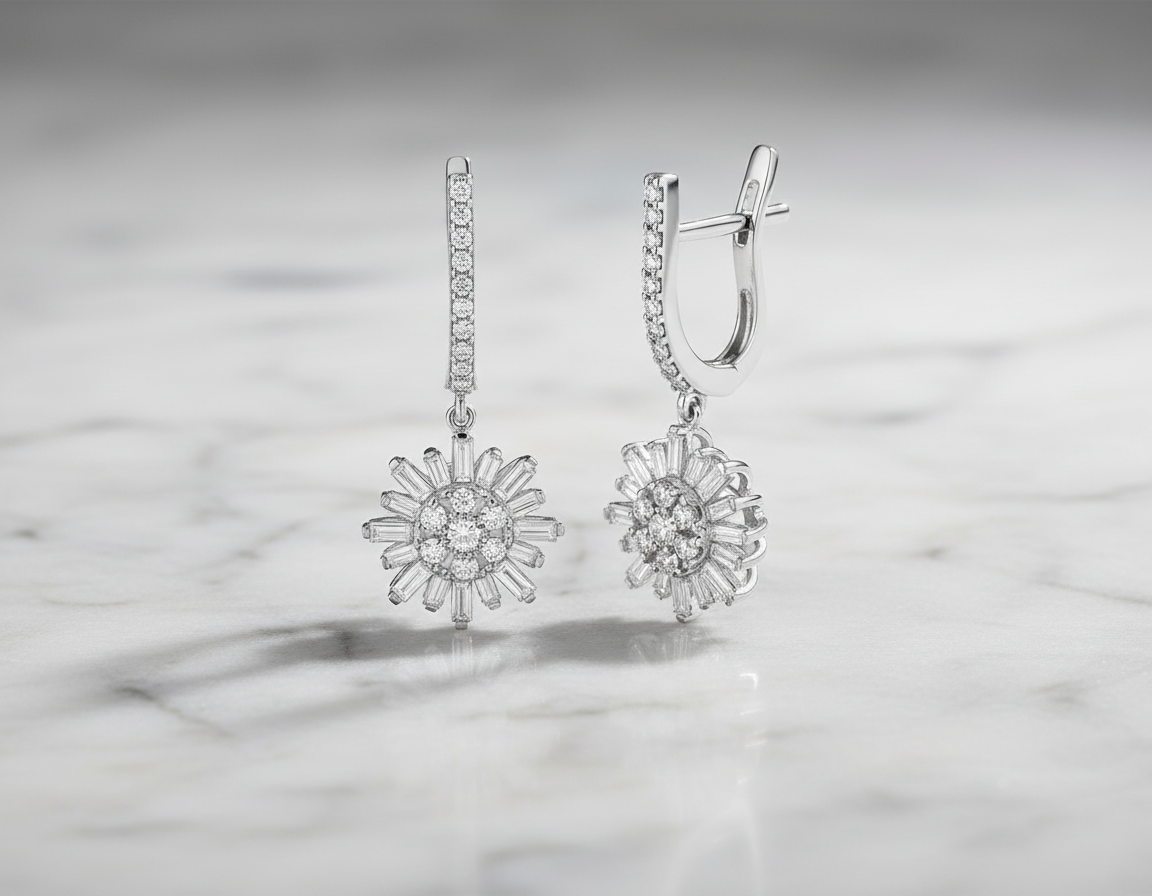 0,78 Karat Tasarım Pırlanta Küpe "Güneş"