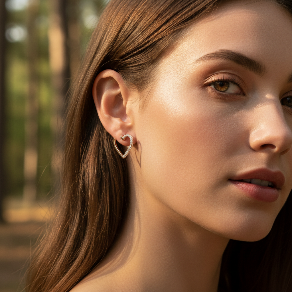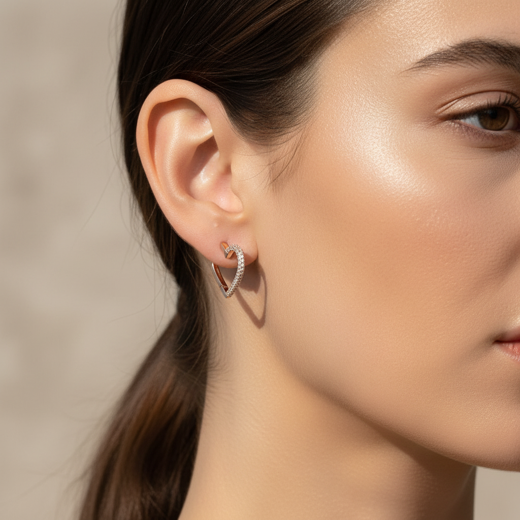 0,90 Karat Tasarım Pırlanta Küpe "Kalp"