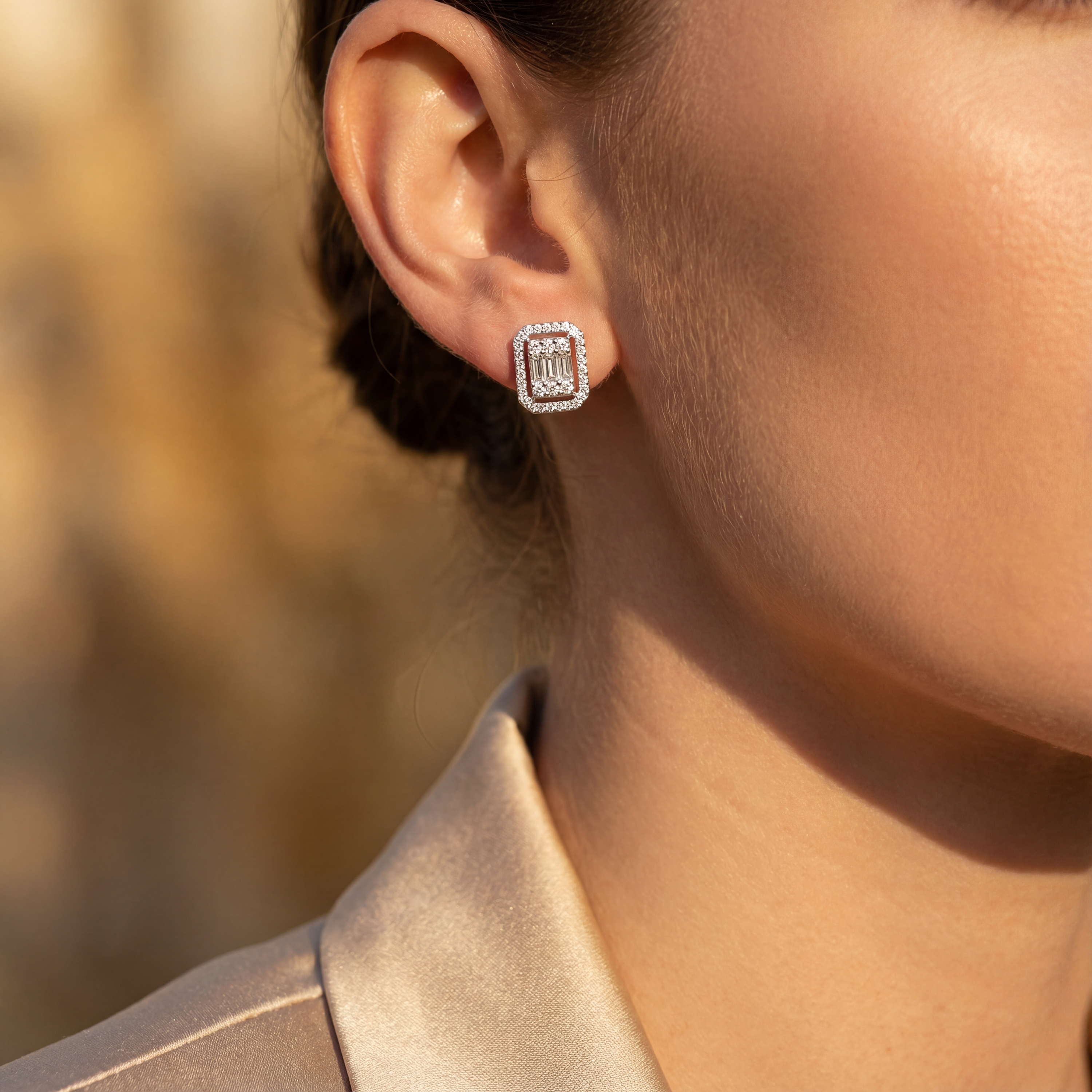 1,00 Karat Baget Pırlanta Küpe
