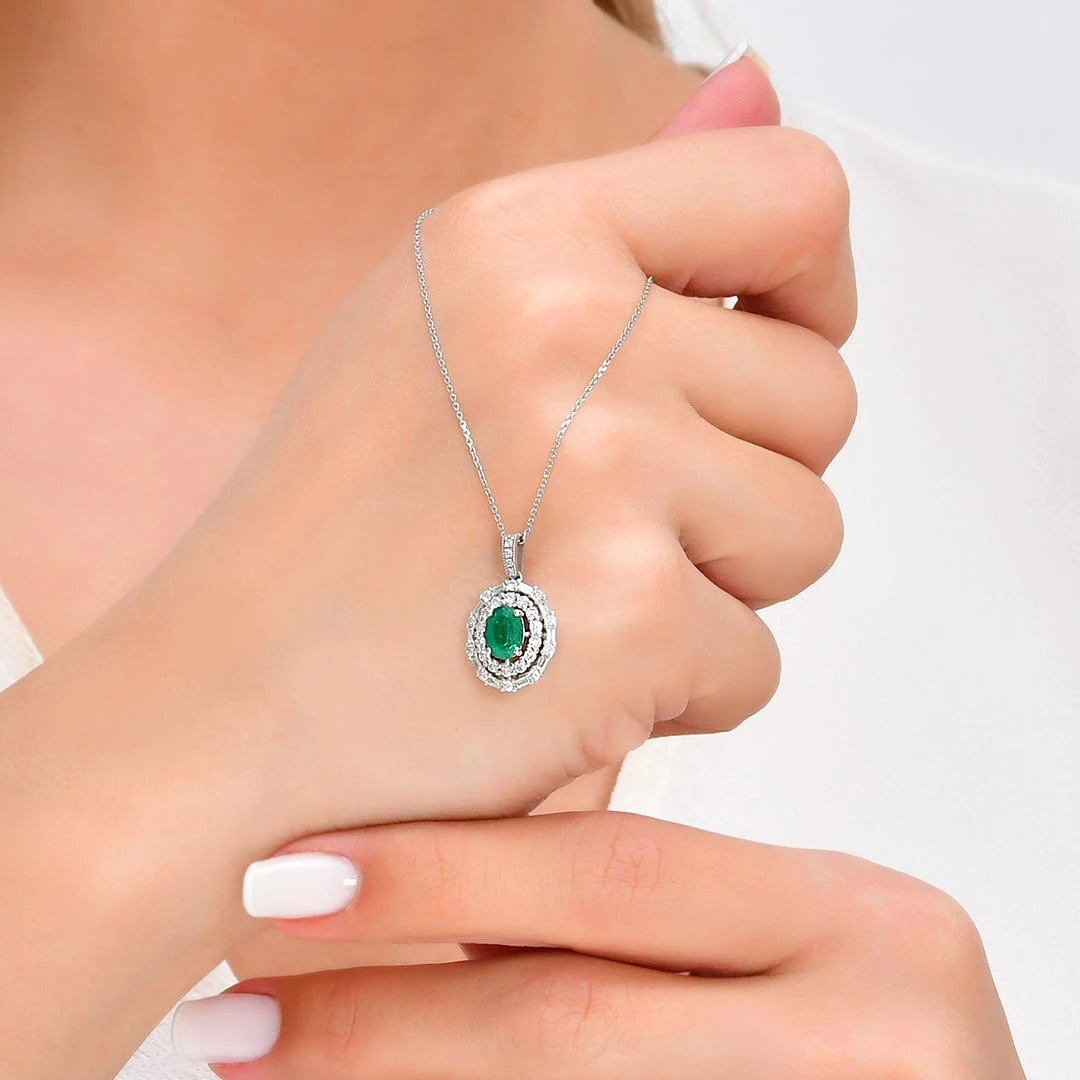 1,45 Karat Pırlanta Zümrüt Kolye