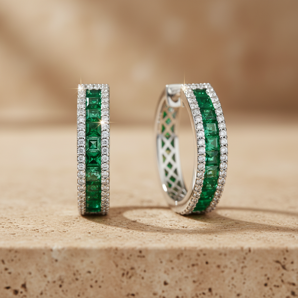 2,05 Karat Pırlantalı Zümrüt Halka Küpe