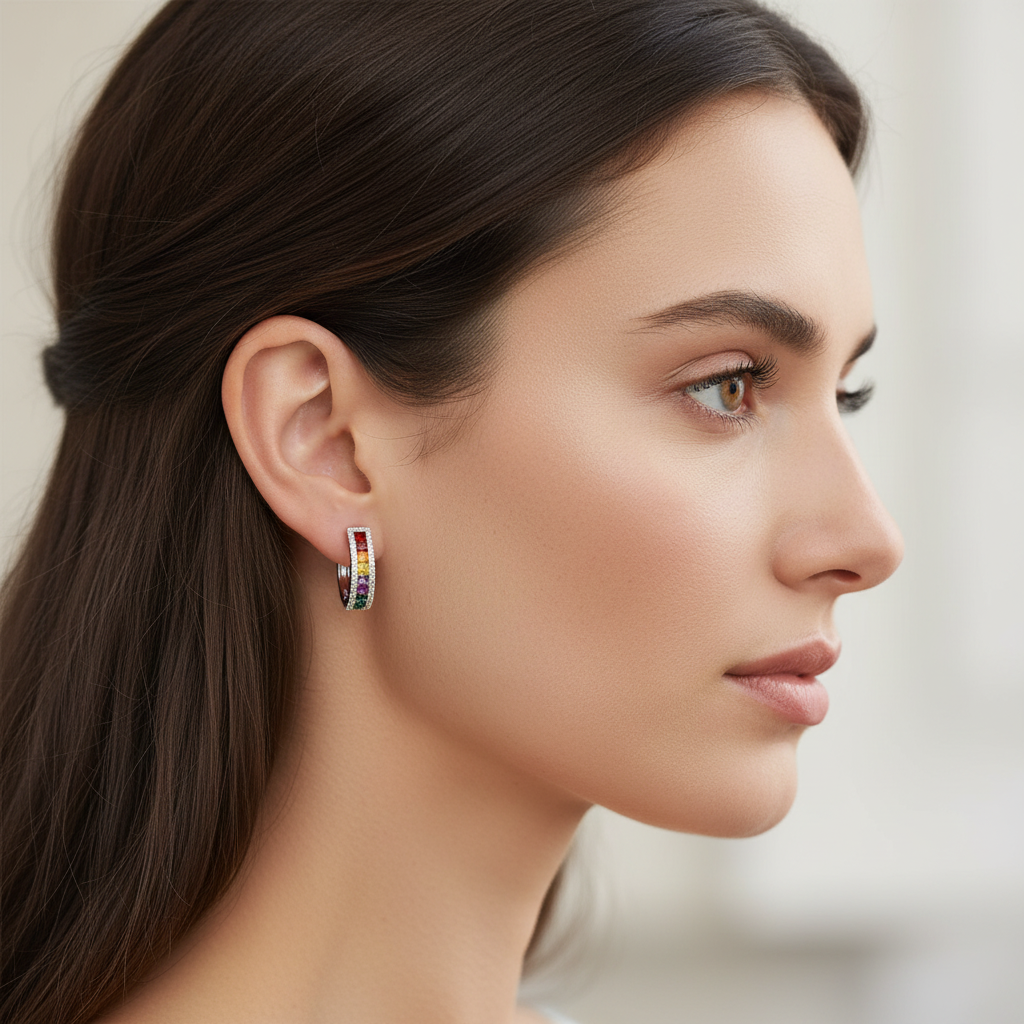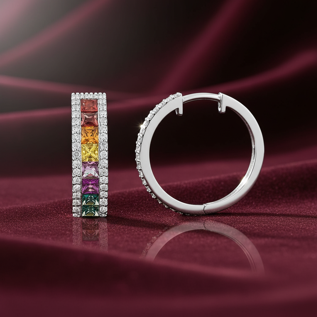 4,07 Karat Pırlanta Halka Küpe "Rainbow"